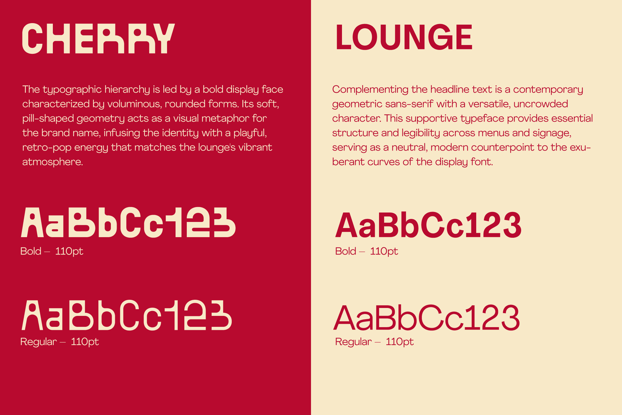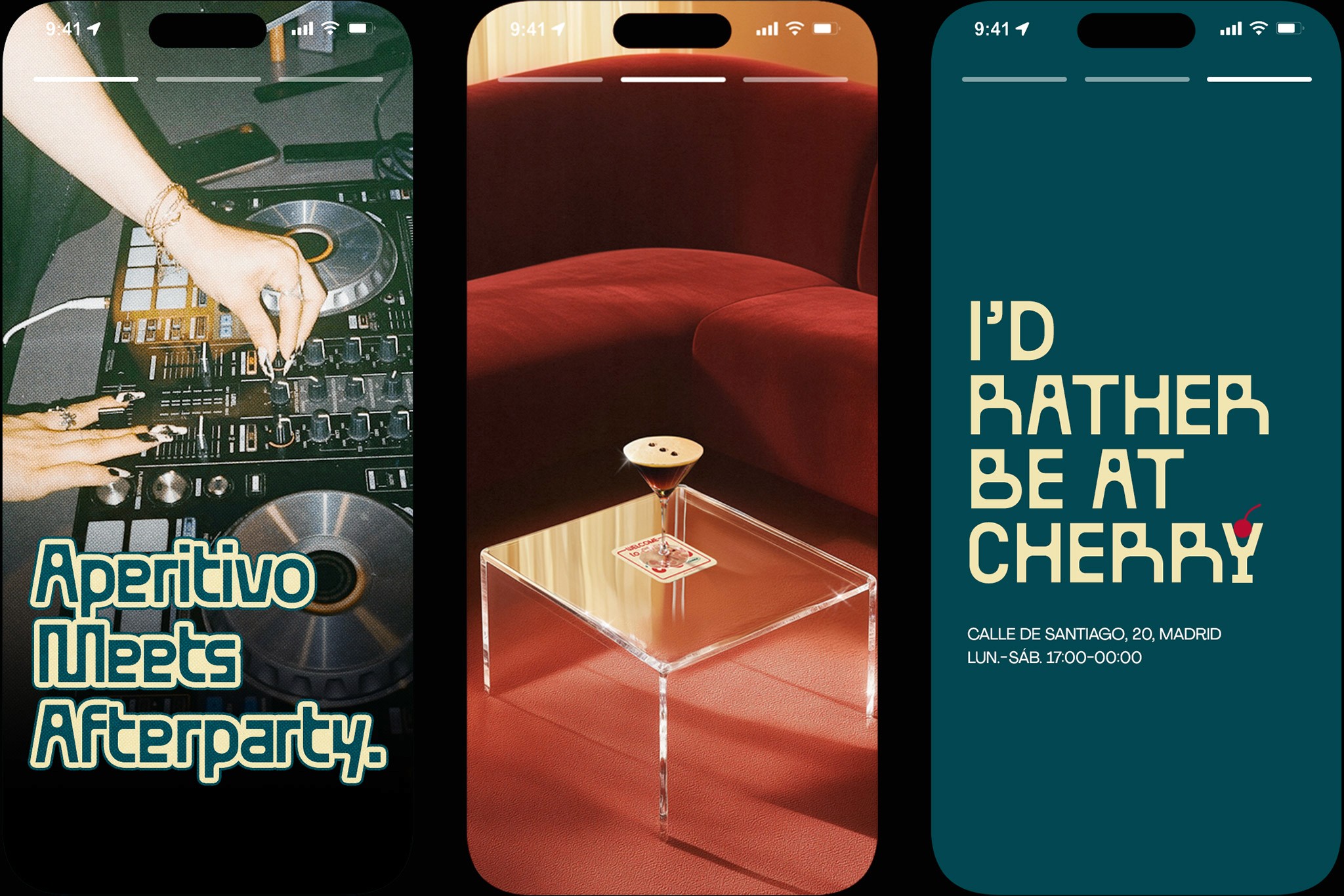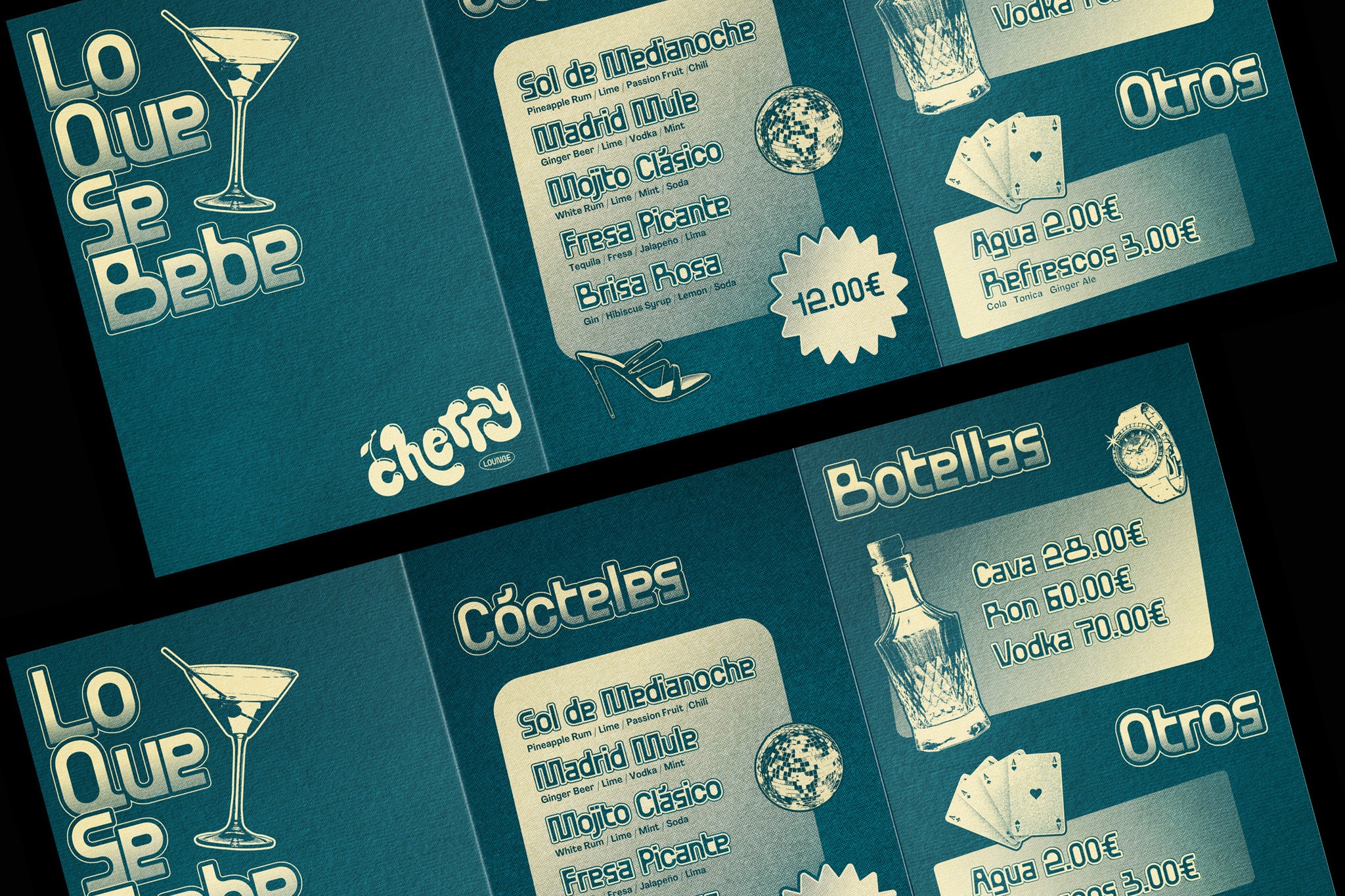 Cherry Lounge Madrid commissioned me to deliver a complete brand identity and creative direction that would bring their vision of a dynamic social space to life. The venue functions as a bridge between an after-work hangout with the excitement of a pre-party destination. To capture this duality, I developed a visual system inspired by a 'modern retro' aesthetic and the iconic, youthful energy of the 60s. The scope of work included logo design, a brand identity system, a comprehensive colour palette, and a distinct tone of voice that reflects the lounge’s welcoming atmosphere.